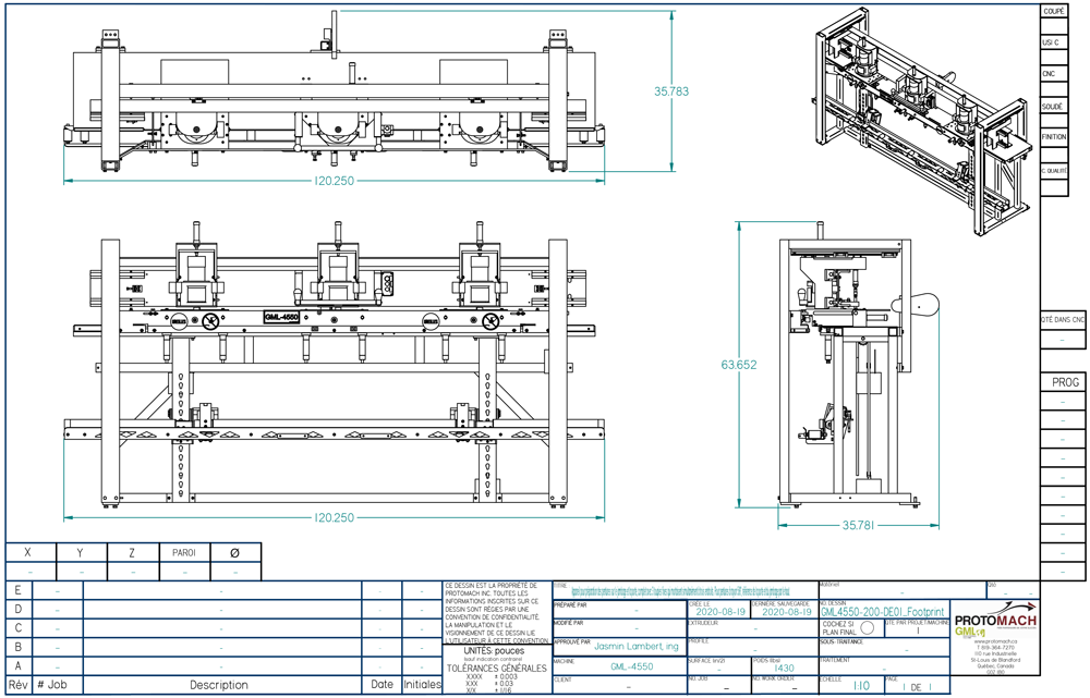 Excluant gabarits (2) à copier pour GML4550 (vendus séparément)