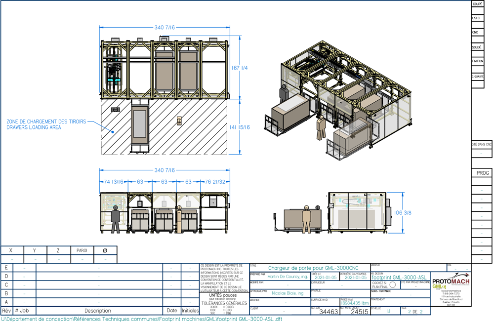 - Incluant une station de chargement manuel et une station de chargement automatisé. Plusieurs stations de chargement supplémentaires peuvent être ajoutées et dédiées à certains produits, modèles, matières…